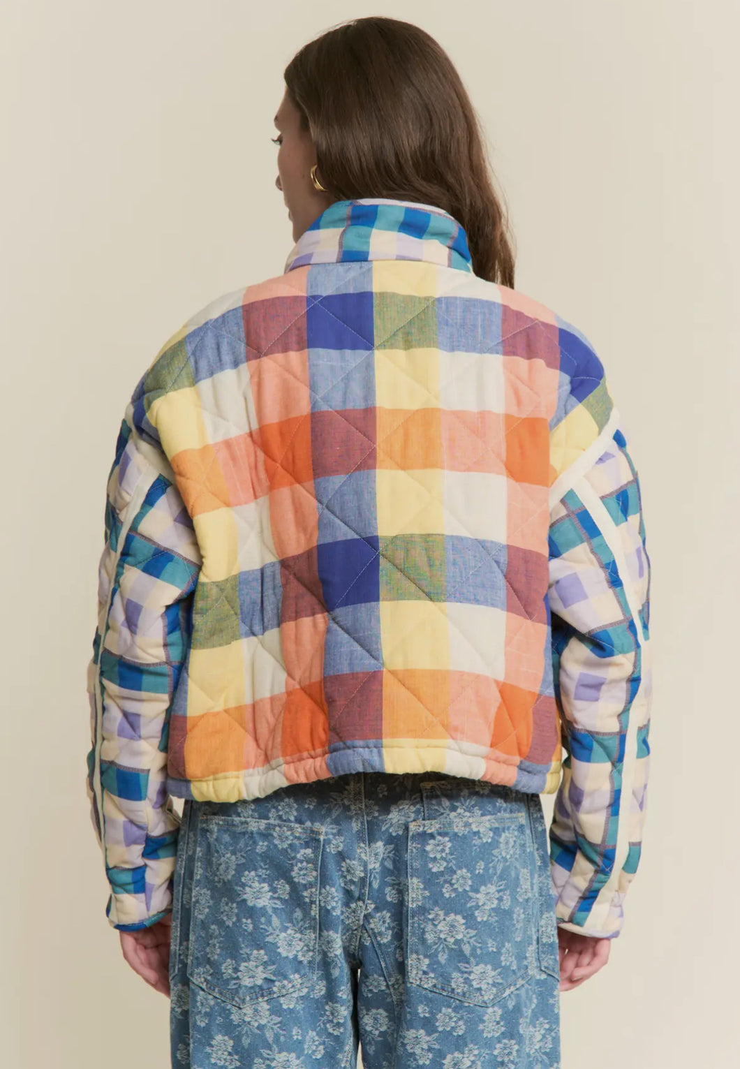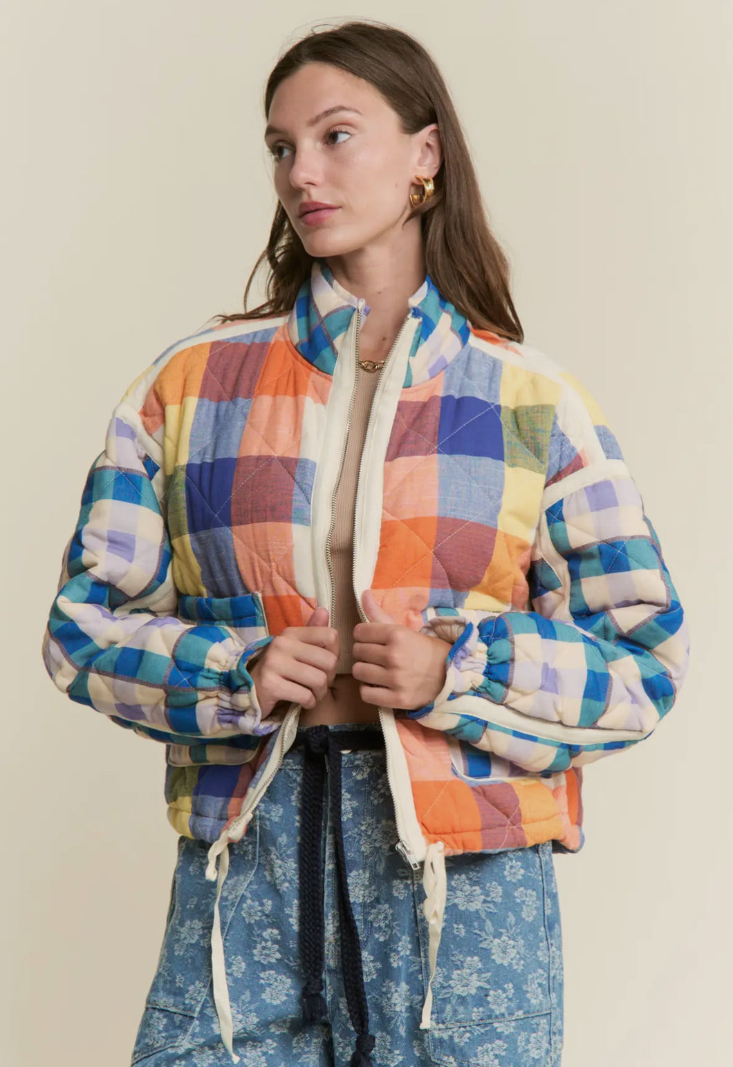 The All About Plaid Jacket is a beautiful multi colored plaid zipper puffer jacket with front pockets.