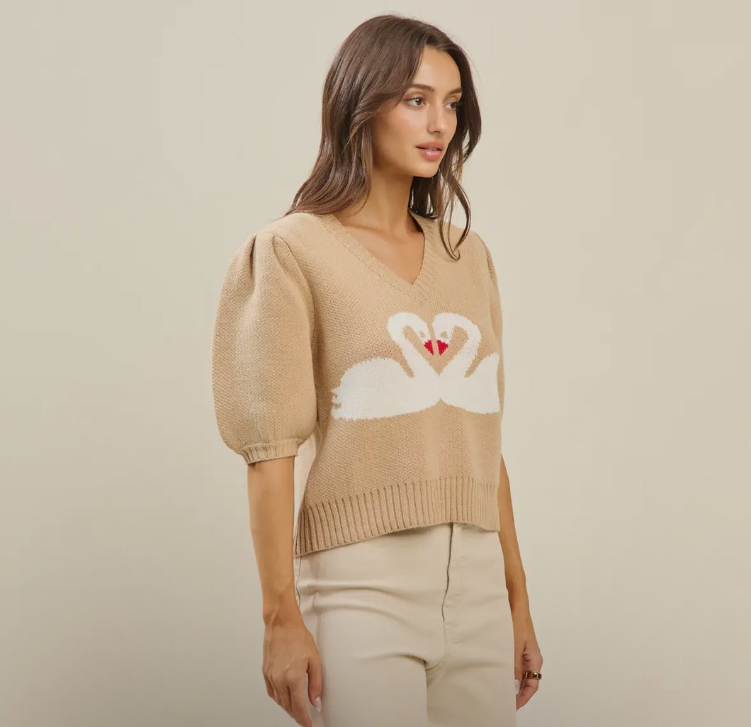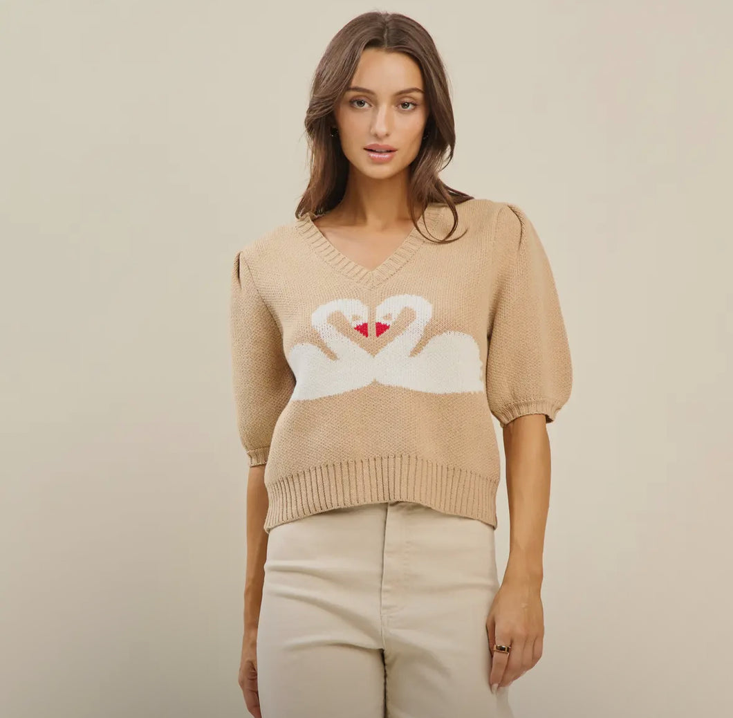 The Swan Top is a cute taupe short sleeve sweater that would pair great with our Aurora Skirt.